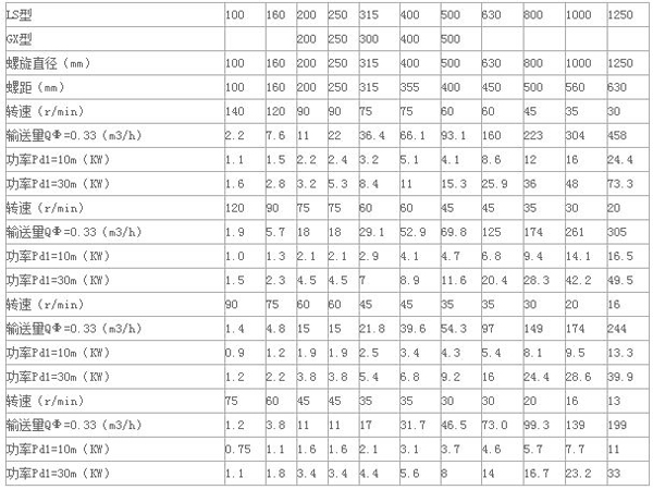ls螺旋輸送機(jī)選型技術(shù)參數(shù):